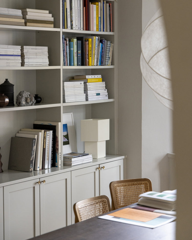 The table lamp Romb 36 is an artistic and clever piece of design. Inspired by two corrugated cardboard shapes stacked one atop the other, Romb 36 has an intriguing geometric appearance. Its compressed form and rippled surface enhances the lightweight cardboard impression, playing tricks on the perception of a lamp. As adaptable and interesting in a home as in a lobby.